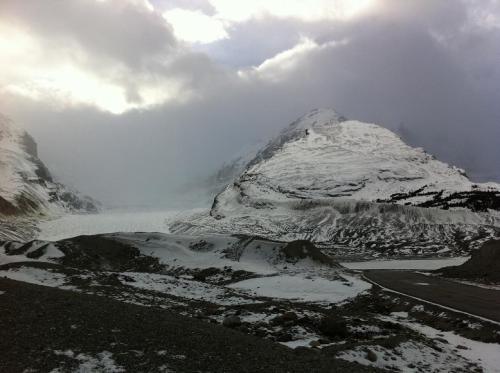 加拿大的阿尔伯塔省有两处落基山脚下出名的国家公园,JASPER和BANFF,而JASPER到BANFF之间的山路也是加拿大最美的风景之一。这次住在埃德蒙顿的同学家里,刚好有机遇横穿这条公路。从阿尔伯塔的省会埃德蒙顿到JASPER大约3个小时车程,我们是在晚饭后启航,高速路没有任何照明,附近都是荒野,伸手不见五指。我仍是初次开这么有应战的高速,除了车灯的范围内,几乎啥也看不见,并且交游车辆很少,良久才华看到一辆车,这时分假设半路窜出个动物还的确有点风险。进山今后天空初步飘起大雪,路面也变的有点湿滑,所以车速也只好放的更慢。抵达JASPER的时分已经是晚上9点多,随便在附近酒吧吃了些东西便回到酒店休憩了。阿尔伯塔省是加拿大的滑雪名胜,这个时分因为没到雪季,酒店倒都很贱卖。